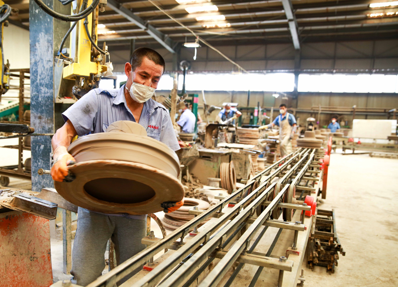 工人們正在用伴生粘土制作特高壓瓷絕緣子。