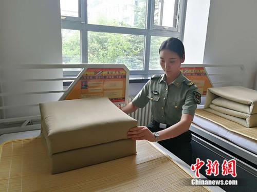 毛雯在整理自己的被褥 中新網(wǎng)記者 張尼 攝