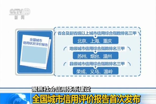 全國城市信用狀況評價報告顯示,北京、上海、重慶位列省會及副省級以上城市信用綜合指數排名三甲,蘇州、煙臺、溫州摘得地級市排名三甲,而縣級市排名前三位的則是榮成、義烏和溫嶺。
