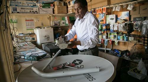 肯尼亞卡賈多的四達(dá)時(shí)代集團(tuán)銷售人員。(美國(guó)《洛杉磯時(shí)報(bào)》網(wǎng)站)