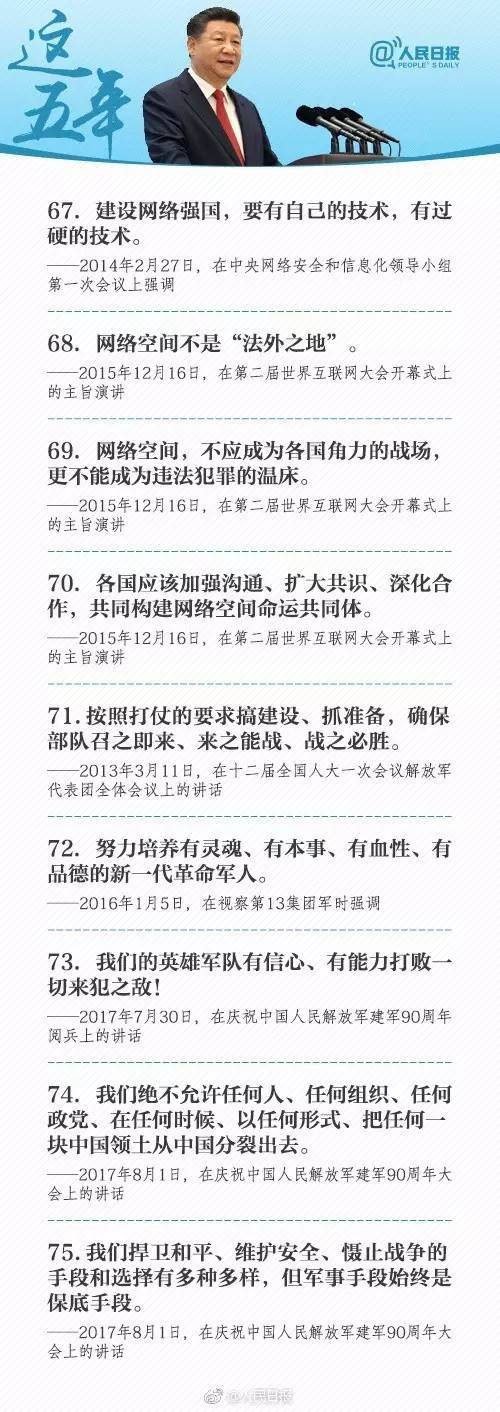 ①堅持“老虎”、“蒼蠅”一起打;②綠水青山就是金山銀山;③空談誤國,實干興邦;④人民對美好生活的向往,就是我們的奮斗目標;⑤確保部隊召之即來、來之能戰、戰之必勝…習近平治國理政100個金句,一起學起來!