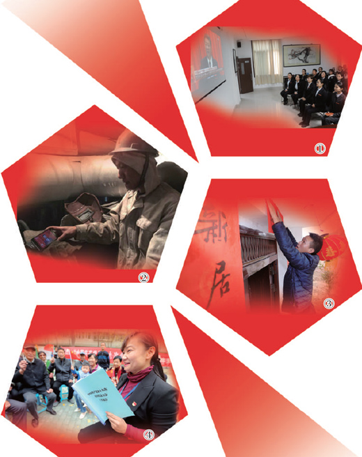 圖④:10月19日,新疆烏魯木齊市堿泉東社區(qū)黨支部書記賈貴茵向黨員和群眾傳達(dá)學(xué)習(xí)十九大報(bào)告。
