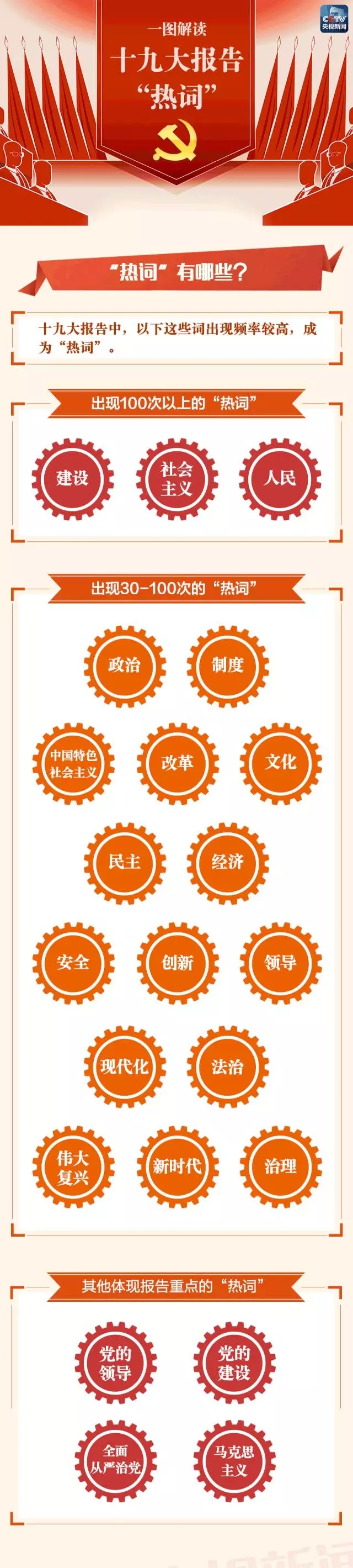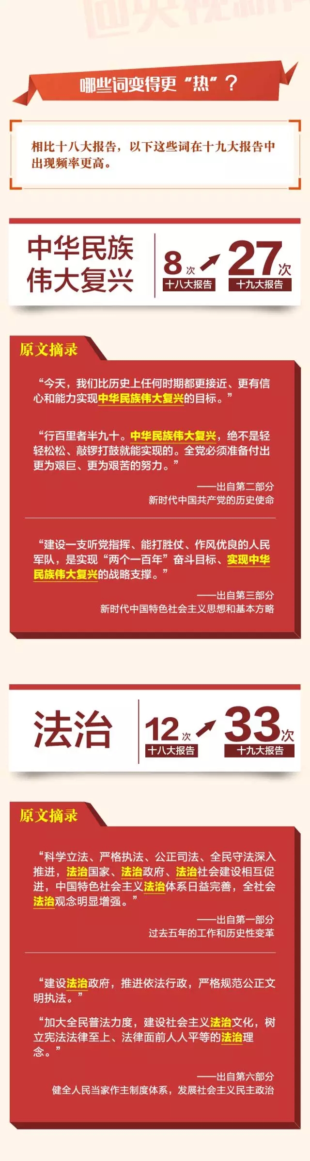 報告中哪些詞最“熱”,哪些詞預示了未來的發(fā)展方向?相比十八大報告,本次報告又有哪些全新的關鍵詞?問題的答案盡在圖中↓↓↓