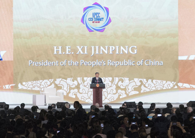 2017年11月10日,在越南峴港舉行的亞太經(jīng)合組織工商領(lǐng)導(dǎo)人峰會(huì)進(jìn)入最重要一天——習(xí)近平主席出席峰會(huì)并發(fā)表主旨演講。