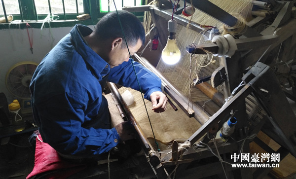 李儉康在織布,這是成品的最后一步。(中國(guó)臺(tái)灣網(wǎng) 王文英攝)