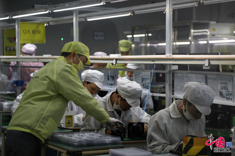 吳福全介紹生產(chǎn)車間裝機(jī)流程。 中國網(wǎng) 楊楠 攝影