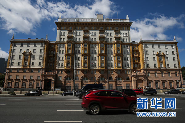 這是2017年7月31日在俄羅斯首都莫斯科拍攝的美國駐俄羅斯大使館。俄總統普京7月30日表示,美國駐俄羅斯外交機構工作人員應裁減755人,以使俄、美在對方國的外交機構人數對等。新華社記者 白雪騏 攝