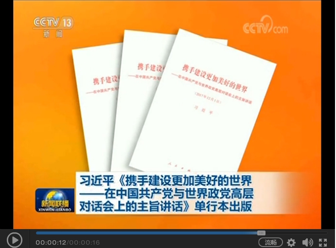 新華社北京12月18日電 中共中央總書記、國家主席習近平《攜手建設更加美好的世界——在中國共產黨與世界政黨高層對話會上的主旨講話》單行本,已由人民出版社出版,即日起在全國新華書店發行。