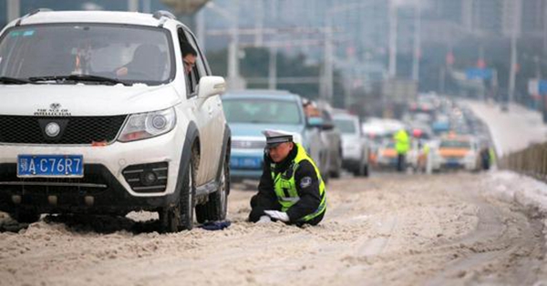 整個上午,曹勇與隊友們顧不上喝水、休息,一共在江漢橋推車近百輛。路過司機們紛紛搖下車窗,向交警們招手致意。中午12時許,冰雪被逐漸清除,交通也恢復暢通。