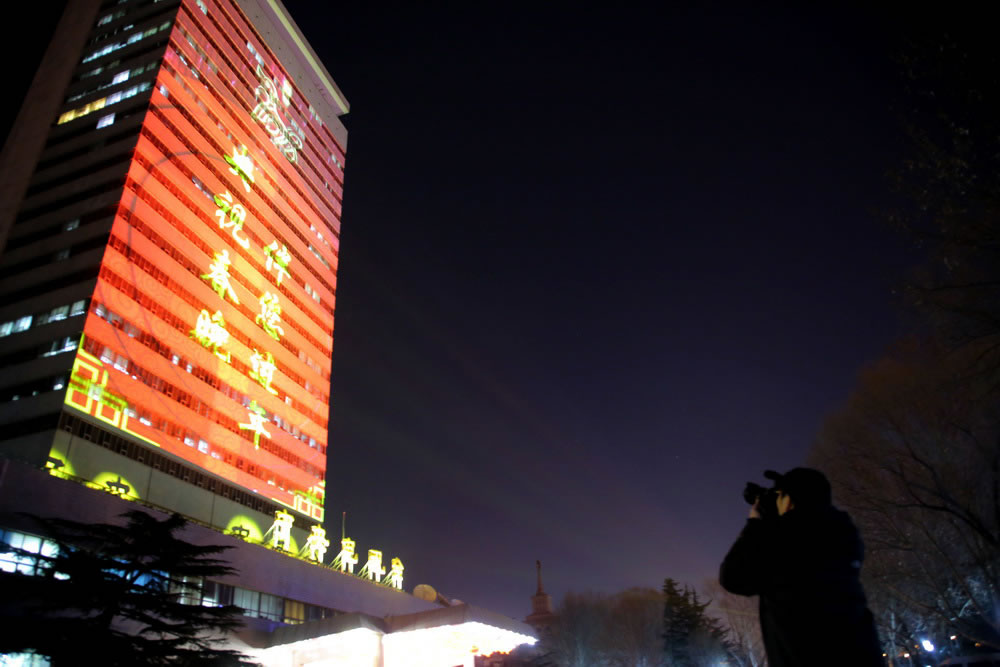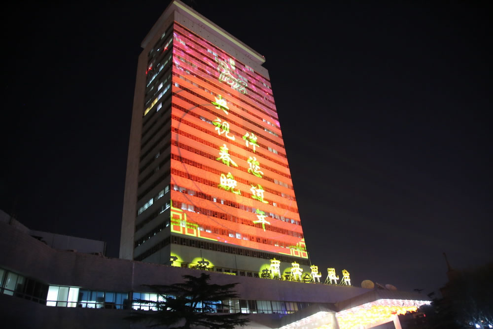 2月12日開始,中央電視臺在復興路辦公區主樓展示燈光秀,分為“祝福新時代”“央視春晚伴您過年”“春節好”三個篇章。燈光秀將持續到春節期間。