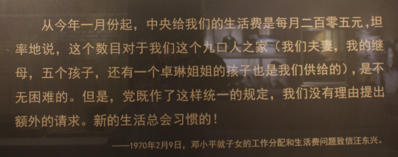 鄧小平下放江西后,工資取消,中央發(fā)給他一定的生活費。九口之家,生活比較緊張。