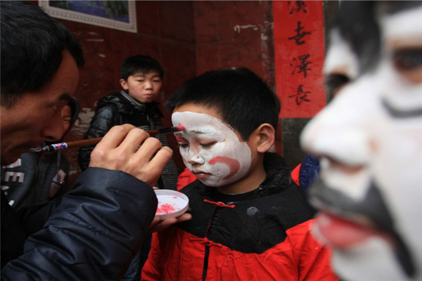 正月初七這天,也是不走親訪友的,因為從清晨“趕野貓”的儀式就開始了。首先,挑選強壯善跑的孩子組成隊伍,然后由年長者分發服裝,為他們化妝。