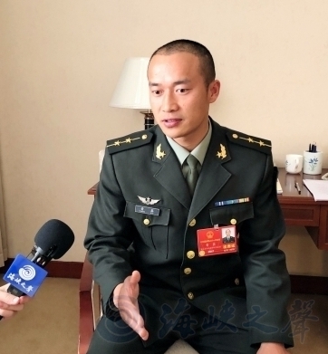 全國人大代表、特戰隊員黃鑫接受記者采訪