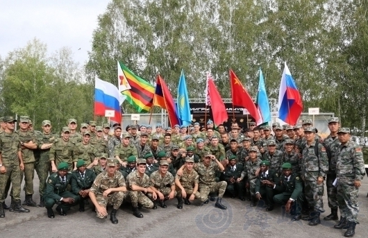 參加俄羅斯"偵察尖兵"國際軍事比賽各國隊員合影