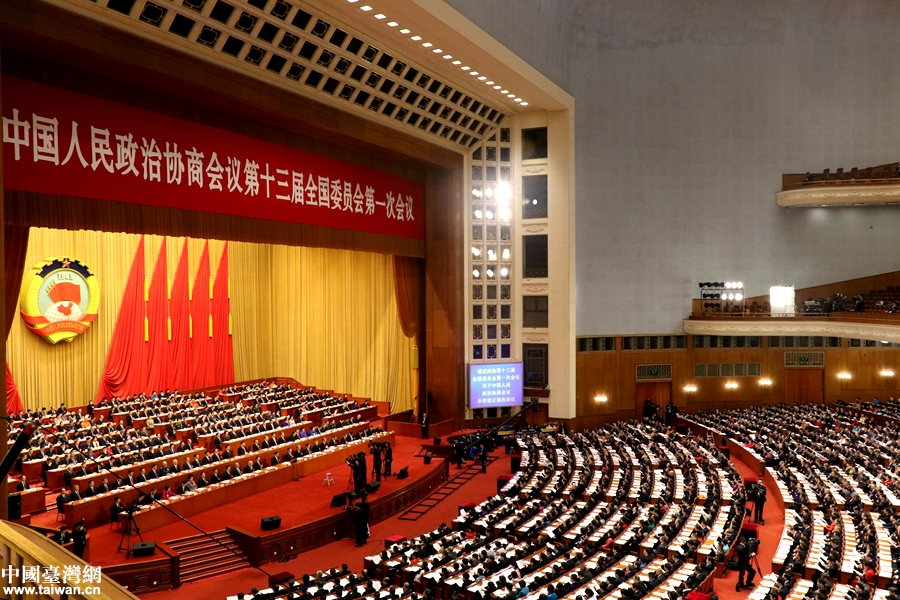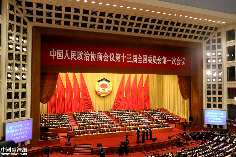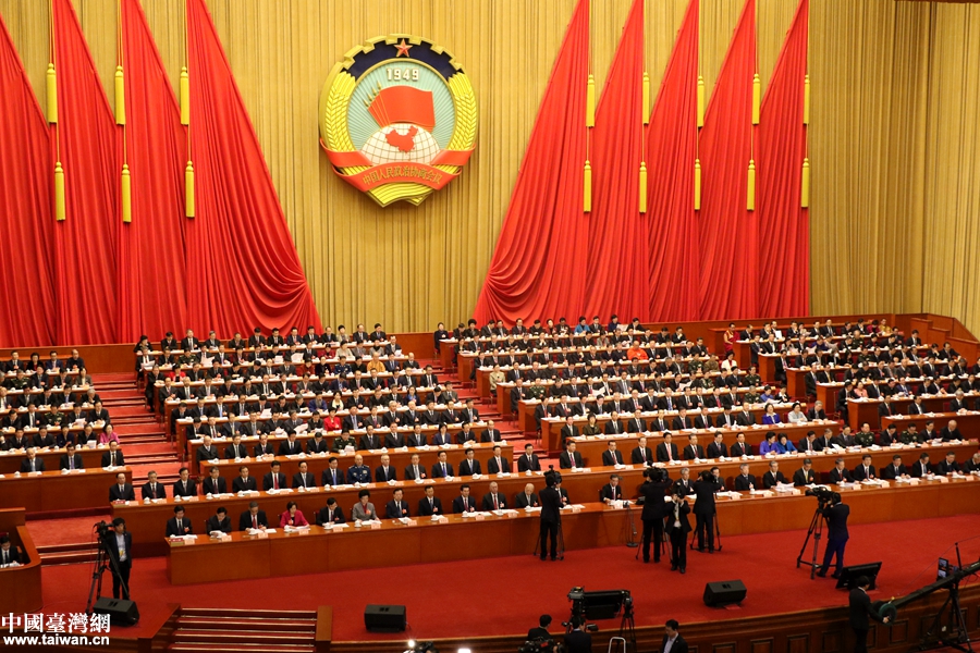 3月15日,全國政協十三屆一次會議在北京人民大會堂舉行閉幕會。(中國臺灣網 盧佳靜 攝)