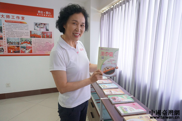 劉桂香展示《金牌育兒》系列叢書之“月子餐”。(中國臺灣網 雍紫薇 攝)