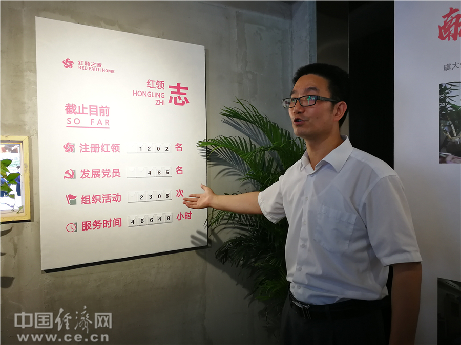 “紅領之家”黨支部書記陳軍浩介紹黨員情況。經濟日報-中國經濟網記者 宋雅靜攝