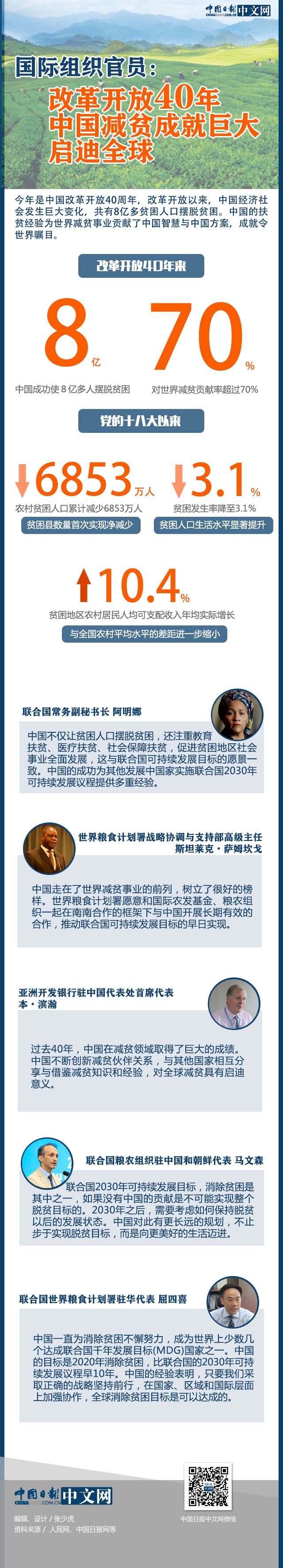 國際組織官員:改革開放40年中國減貧成就巨大 啟迪全球