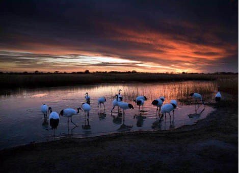吉林向海國家級自然保護區總面積1054.67平方公里,這里是沼澤分布最廣,最集中的地區之一,是重要的候鳥繁殖和遷徙途中的補給站。鳥類293種,其中包括了6種鶴類,和10種國家一級保護動物。在世界上僅有的近2000只丹頂鶴中,最多時有200多只在這里繁衍生息。