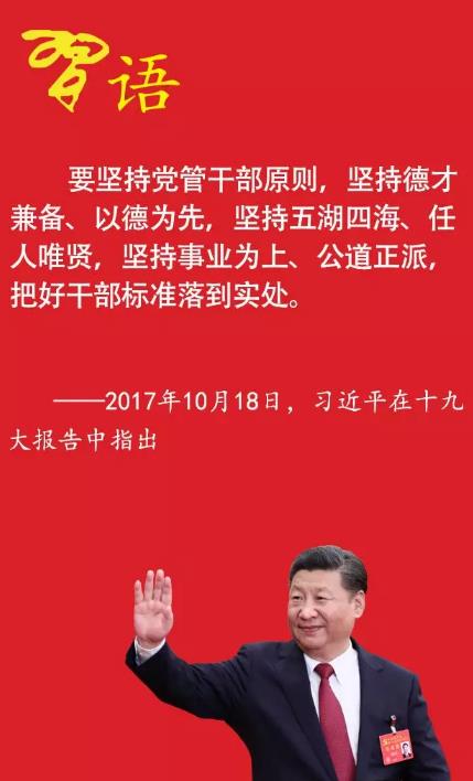 要堅持黨管干部原則,堅持德才兼備、以德為先,堅持五湖四海、任人唯賢,堅持事業為上、公道正派,把好干部標準落到實處。