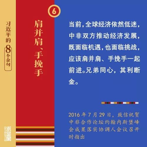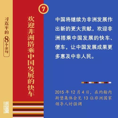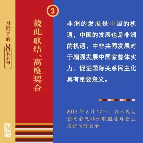 7月19日至28日,中國國家主席習近平將對阿聯酋、塞內加爾、盧旺達和南非進行國事訪問,出席金磚國家領導人第十次會晤,過境毛里求斯并進行友好訪問。到訪的5個國家中,有4個是非洲國家。而關于中非友誼、中非發展、中非命運共同體理念,習近平曾在不同場合多次強調和闡釋,一起來學習吧!