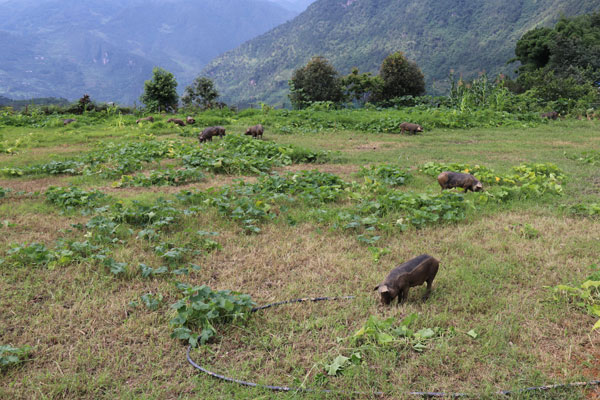 老尹說,如果光靠扶,自己不努力的話也沒啥用。如果人家不扶了那你咋搞?當地人勤勞淳樸,他們夫妻愿意教當地人養豬。當地貧窮主要還是受地理位置的制約,他們有原生態的好東西,但賣不掉。如果考慮到保鮮、運輸費用,賣到外地只能賣高價才能收回成本。