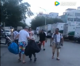 當天晚上8點左右,一位佝僂著背的拾荒婆婆,背著兩個比她人還大的口袋緩慢走著。
