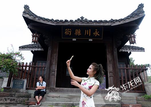 永川縣衙的古樸建筑飽含了歲月的滄桑,一名游客正在前門(mén)拍照。記者 謝鵬 攝