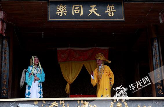 幾名本土川劇老演員正在表演折子戲。記者 謝鵬 攝