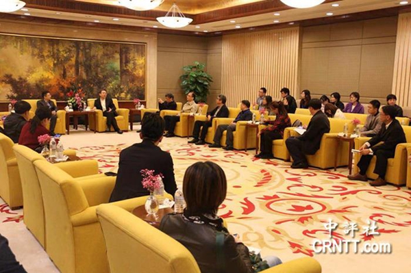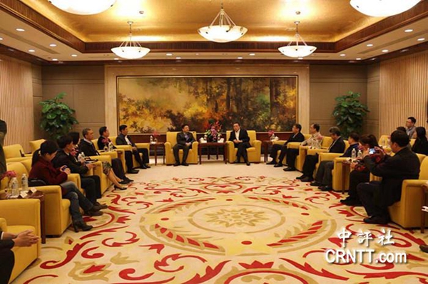 會(huì)見兩岸網(wǎng)絡(luò)新媒體參訪團(tuán)現(xiàn)場。(圖片來源:中評(píng)社)