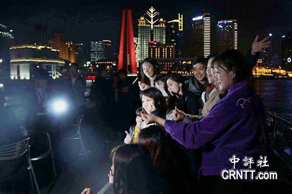 感受到此情此景,兩岸網絡新媒體記者在游船上開始拍照、直播、錄制視頻,利用互聯網新媒體技術將自己所感受到的外灘風光傳向兩岸三地。