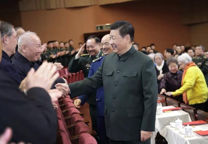 受邀的駐京部隊老干部們曾為建立、保衛、建設新中國,為國防和軍隊建設、改革、發展作出突出貢獻。習近平來到他們中間,同他們親切握手,關切詢問他們的身體和生活情況,共同回顧在黨的十九大精神指引下,過去一年來黨、國家和軍隊事業展現的新氣象、開創的新局面、取得的新成就。