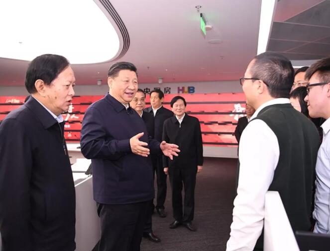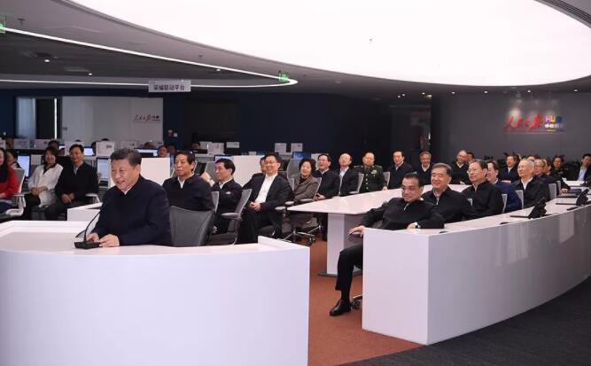 在習近平帶領下,中共中央政治局同志走出中南海,把2019年開年的集體學習“課堂”設在了媒體融合發展的第一線——人民日報社新媒體大廈,采取調研、講解、討論相結合的形式進行。