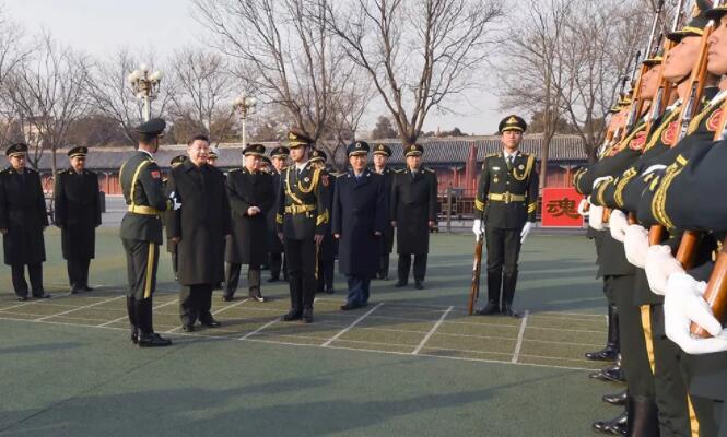 他還來到了北京衛戍區支援保障大隊警衛勤務一中隊、作戰值班室等,深入基層班排,察看執勤哨位,親切慰問部隊官兵,代表黨中央和中央軍委,向全體人民解放軍指戰員、武警部隊官兵、民兵預備役人員致以誠摯問候和新春祝福。