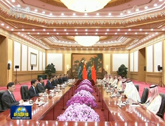 穆罕默德首先轉達薩勒曼國王對習近平的親切問候和良好祝愿。穆罕默德表示,沙中友好交往歷史悠久。當前,兩國關系十分友好,經貿合作發展迅速。雙方沒有任何分歧。沙特對中國在習主席領導下的光明發展前景充滿信心,視中國為重要戰略伙伴,感謝中國對沙特國內改革和發展的支持。阿拉伯半島是古絲綢之路的一部分。沙特支持共建“一帶一路”倡議,愿將沙方“2030愿景”同“一帶一路”倡議對接,進一步深化兩國各領域務實合作。沙方堅定奉行一個中國政策,中國有權為維護國家安全采取反恐和去極端化舉措,沙方予以尊重和支持,愿同中方加強合作。沙特重視中國在國際和地區事務中的積極作用,愿同中方加強溝通協調。