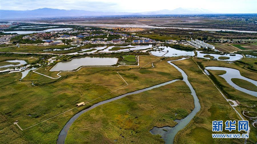 這是甘肅省張掖國家濕地公園一角(2018年9月5日無人機拍攝)。新華社記者 陶明 攝