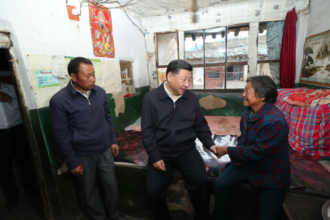 2017年6月21日下午,習近平到山西省忻州市岢嵐縣趙家洼村特困戶王三女家中看望。