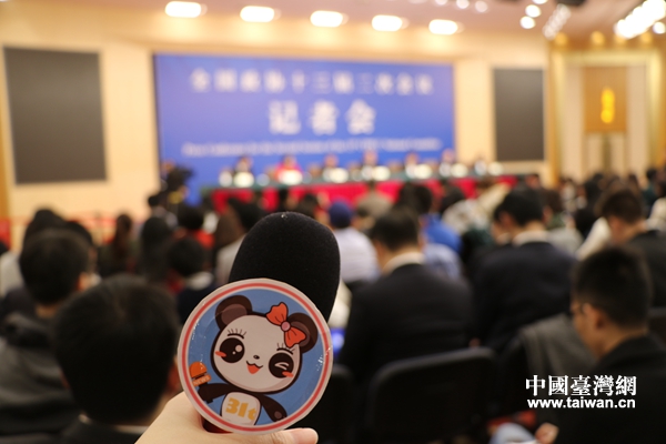 “融融”走進全國兩會新聞中心。(中國臺灣網 雍紫薇 攝)