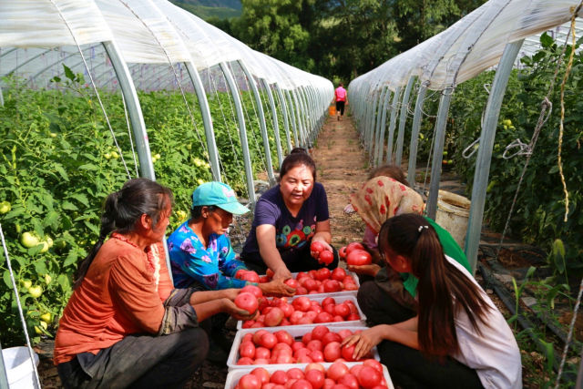 趙會杰在蔬菜大棚了解西紅柿的生長情況(資料照片)。新華社發(李國志 攝)