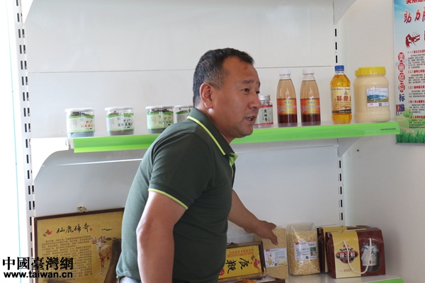 侯志國向采訪團介紹村中農產(chǎn)品。(中國臺灣網(wǎng) 尹賽楠 攝)