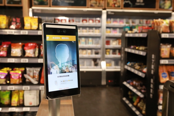 蘇寧首家全場(chǎng)景應(yīng)用全數(shù)字化視覺(jué)無(wú)人店,通過(guò)全球最新的無(wú)人門(mén)店科技,實(shí)現(xiàn)了消費(fèi)者可以即拿即走,同步支付。張芯蕊 攝