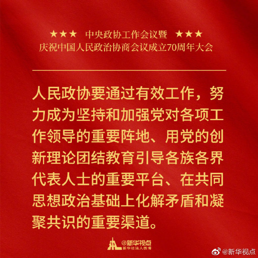 金句來了!習近平在中央政協工作會議暨慶祝中國人民政治協商會議成立70周年大會上的講話金句!