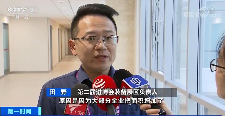 第二屆進博會裝備展區負責人 田野:相比首屆來說,數量方面是減少的,原因是因為大部分企業把面積增加了。全方位展示它們所有系列的產品。