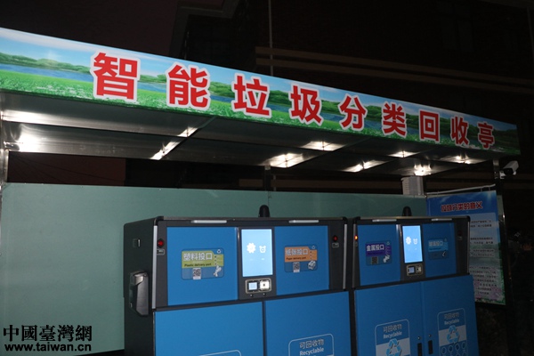 智能垃圾分類回收亭引起記者關注。(中國臺灣網 尹賽楠 攝)