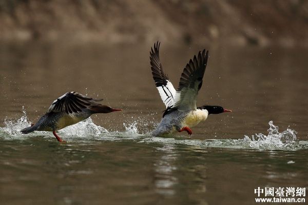 赤紅的嘴巴,飄逸的長發(fā),亮翅露出兩道杠,號稱“會飛的中隊長”,它們就是被譽為“國鴨”的明星——中華秋沙鴨。