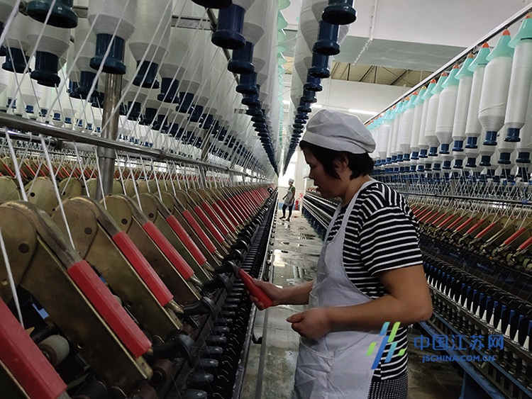 她工作的紡織廠,離家只有幾百米,騎上一輛電動車,“抬腿”就到。記者跟著張興蘭走進車間,130多臺機器散發出的熱量,讓室溫超過30攝氏度。她接滿一壺足有2800毫升的熱水,換上一身短袖衫,就開始干起來。張興蘭站在那里,走走停停,熟練地用電捻清理機器上飄落的棉絮。一個班,她面對著每臺24米長的機器,要清理34臺。