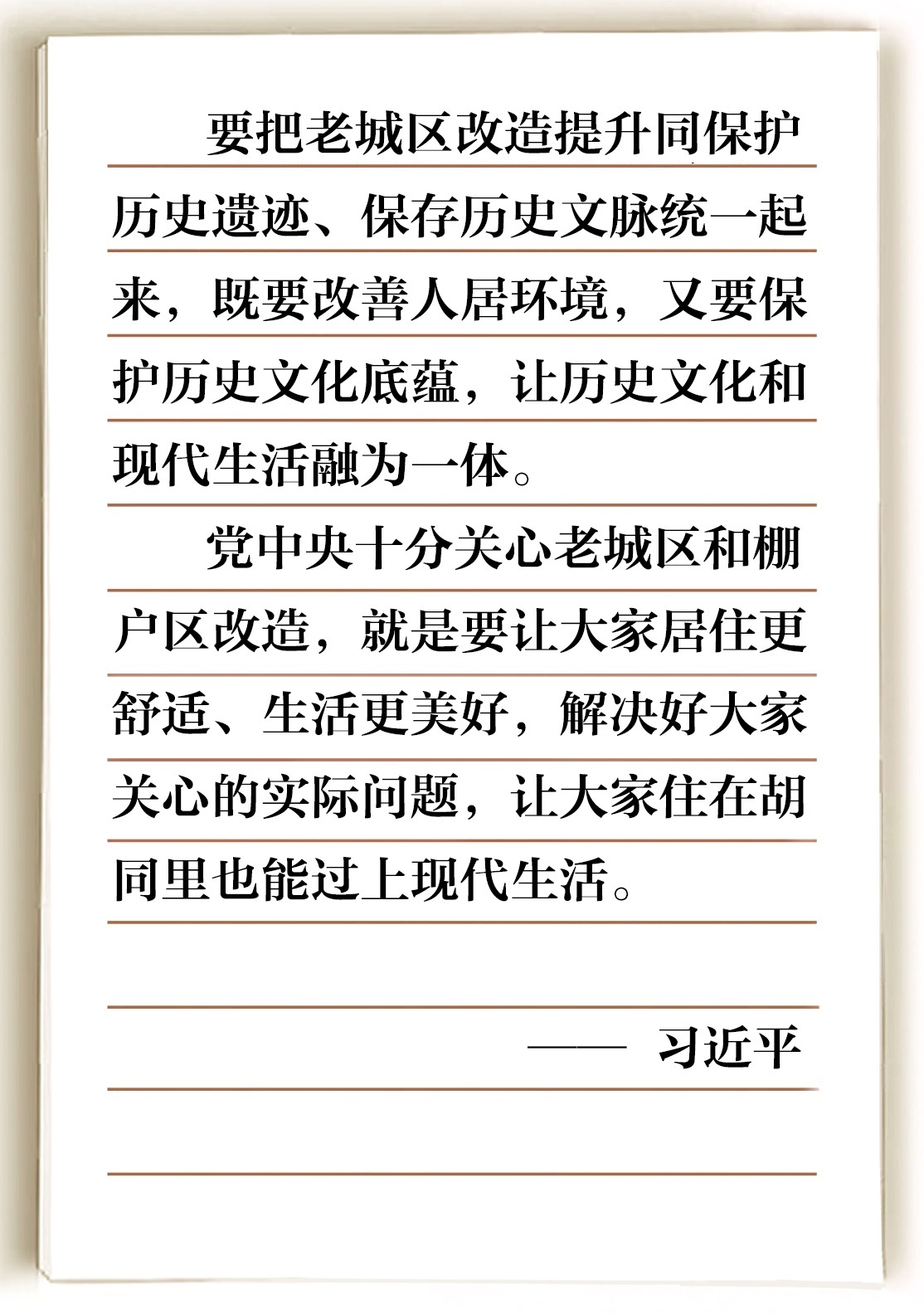 “讓大家住在胡同里也能過上現(xiàn)代生活”,這不僅包括居住條件、環(huán)境衛(wèi)生的改善,也包括文明風(fēng)氣、健康生活方式的培養(yǎng),還意味著社區(qū)治理和服務(wù)的精準(zhǔn)化、精細(xì)化。既注重保護(hù)歷史文化底蘊,又解決好大家關(guān)心的實際問題,我們就能讓群眾居住更舒適、生活更美好。