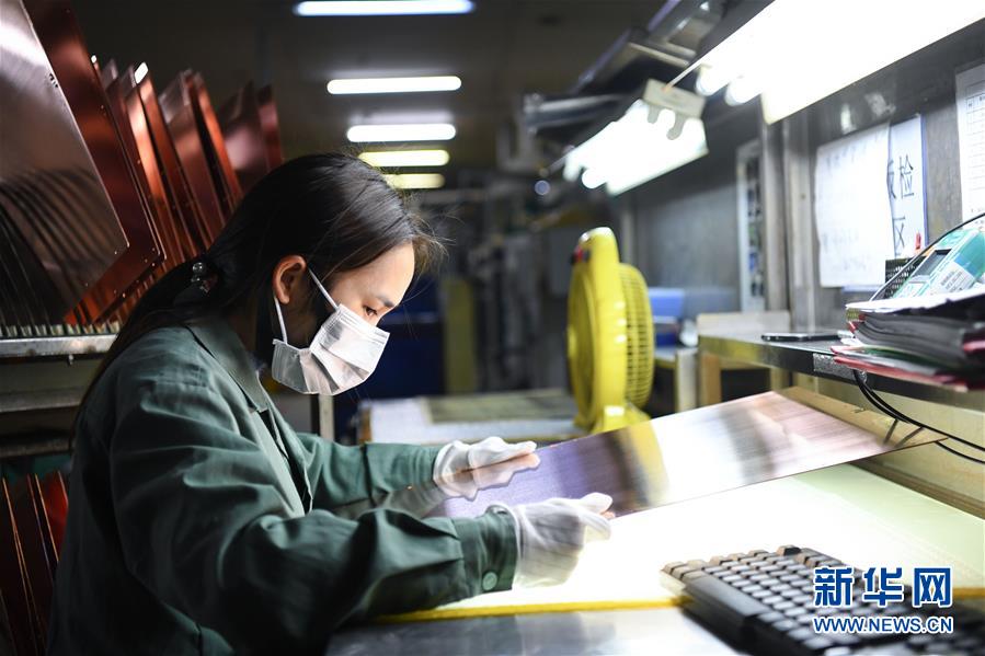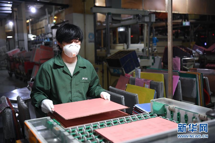 2月10日,位于廣州開發區的廣州興森快捷電路科技有限公司生產車間內,工人佩戴口罩作業。 近日,在做好防控新冠肺炎疫情工作的同時,全國許多企業開始復工復產。 新華社記者 鄧華 攝