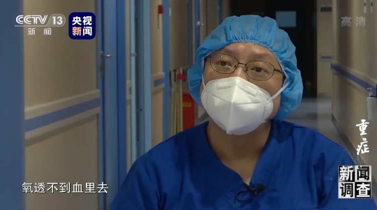 上海華山醫院感染科主任醫師陳澍:這說明肺的底子太差,就是你雖然把氧供進去,他里邊彌散不了,他里面可能肺泡里頭都是一種膠凍或者水樣的東西,呼吸窘迫的炎癥滲出很厲害,氧透不到血里去。如果你撐不過這個階段,那就很糟糕。