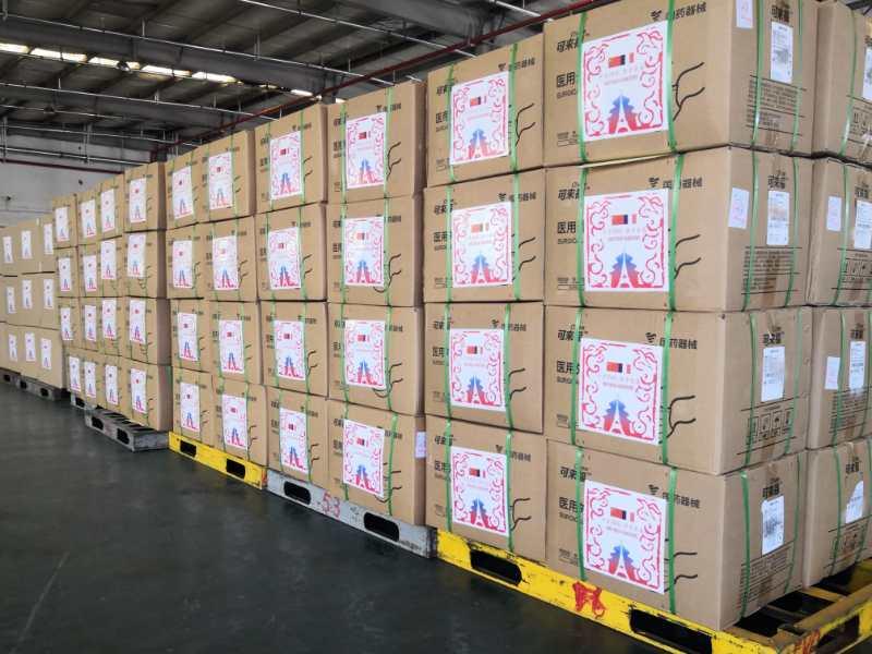 這是3月16日在中國上海拍攝的中國政府向法國提供的醫療物資。2020年3月18日,在法國因疫情實行全國隔離的次日,中國政府向法國提供的醫療物資援助運抵巴黎戴高樂機場。新華社發